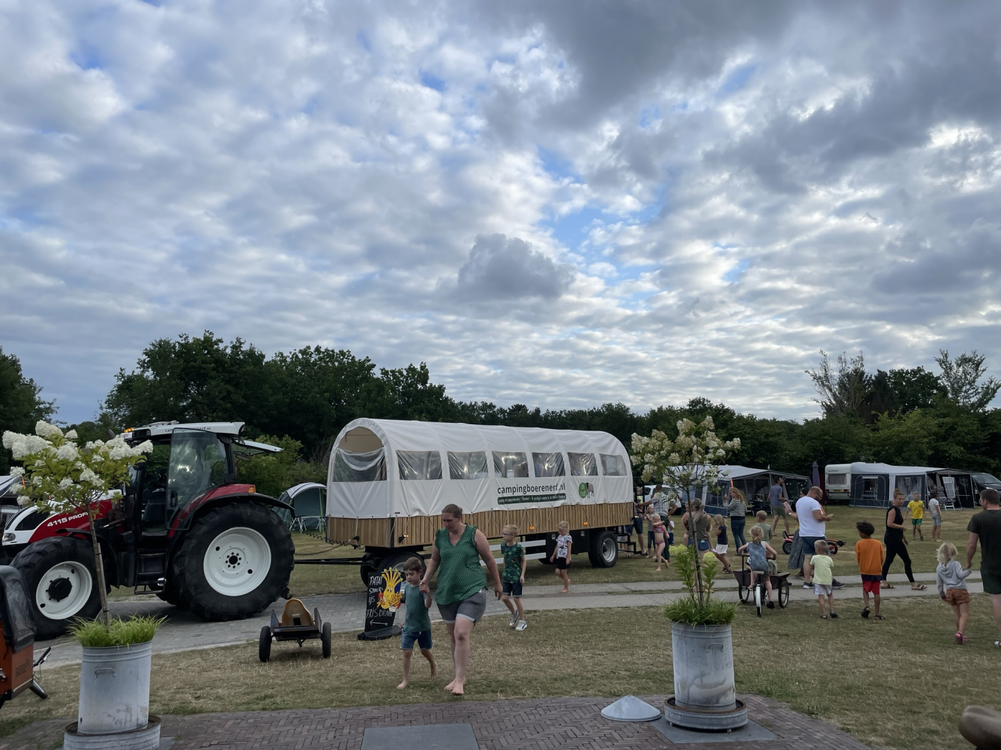 De toeter van de trekker klonk weer over de camping en dat betekent, een huifkartocht! In de huifkar is het goed opletten geblazen, want in de mooie weilanden zijn veel dieren te zien. Koeien, hazen, bijzondere vogels en natuurlijk ook... reetjes. Wie spot de eerste??